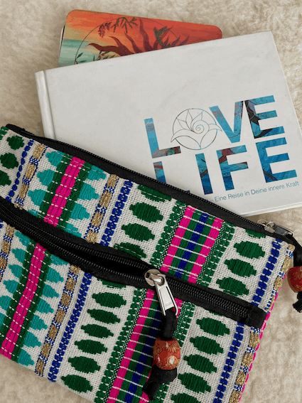 Zur Aufbewahrung des Karten-Buch-Sets gibt es handgemachte Taschen in begrenzter Stückzahl.